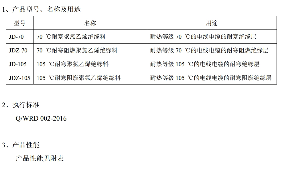 电线电缆用耐寒(阻燃) PVC 绝缘料是以聚氯乙烯树脂为基料,加入增塑剂、 耐寒增韧剂、 填充剂(阻燃剂)、稳定剂、润滑剂、着色剂等助剂,经混炼、造粒而制得的颗粒料。